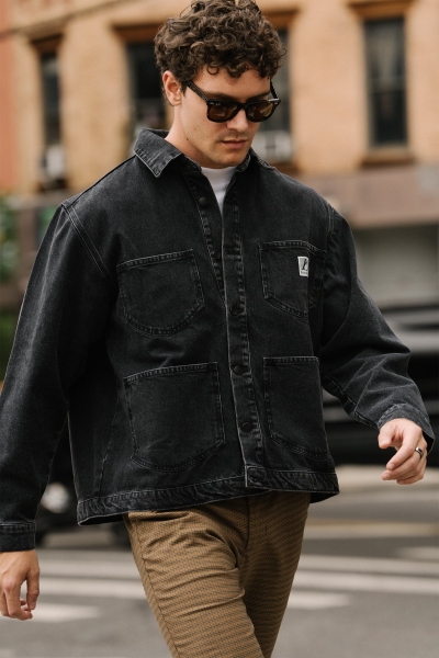 MANHATTAN DENIM-ARBEITSJACKE - GEWASCHENES SCHWARZ